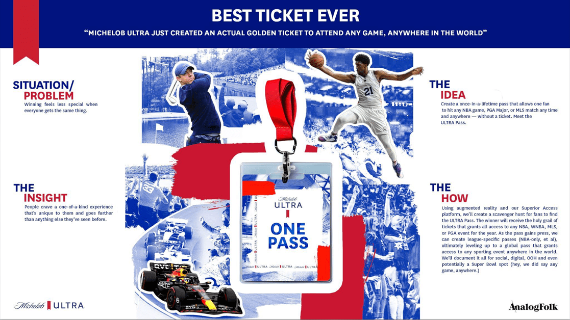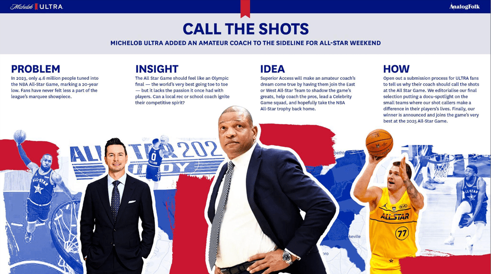 Michelob ULTRA sought to deepen its emotional connection with sports fans by creating scalable, buzz-worthy experiences that could be replicated across various sports and cultural passion points. The initiative focused on dramatizing the Courtside experience, helping fans feel closer to the action — whether watching live or from home. Each moment was crafted to be succinct, spontaneous, and social-first, maximizing media impact and cultural conversation.