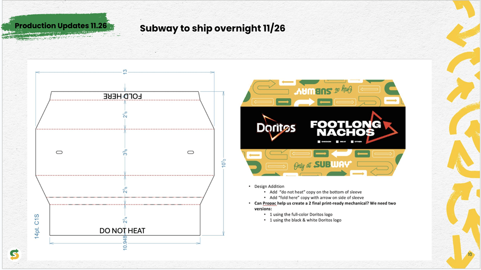 - Delivered a visually compelling, functional packaging design that passed internal Subway and Doritos approval.