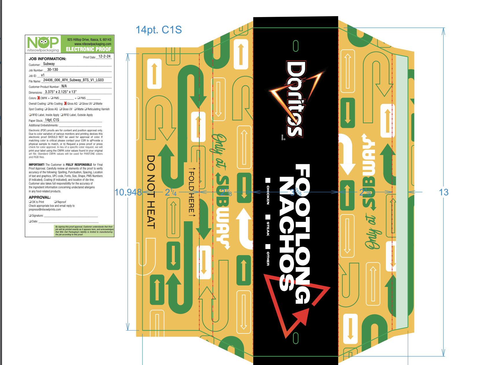 To celebrate a brand collaboration between Subway and Doritos, our team was tasked with designing a limited-edition co-branded packaging that honors the identity of both powerhouse brands while remaining highly functional and production-ready. The project required 2–3 creative rounds exploring visual design systems that would: