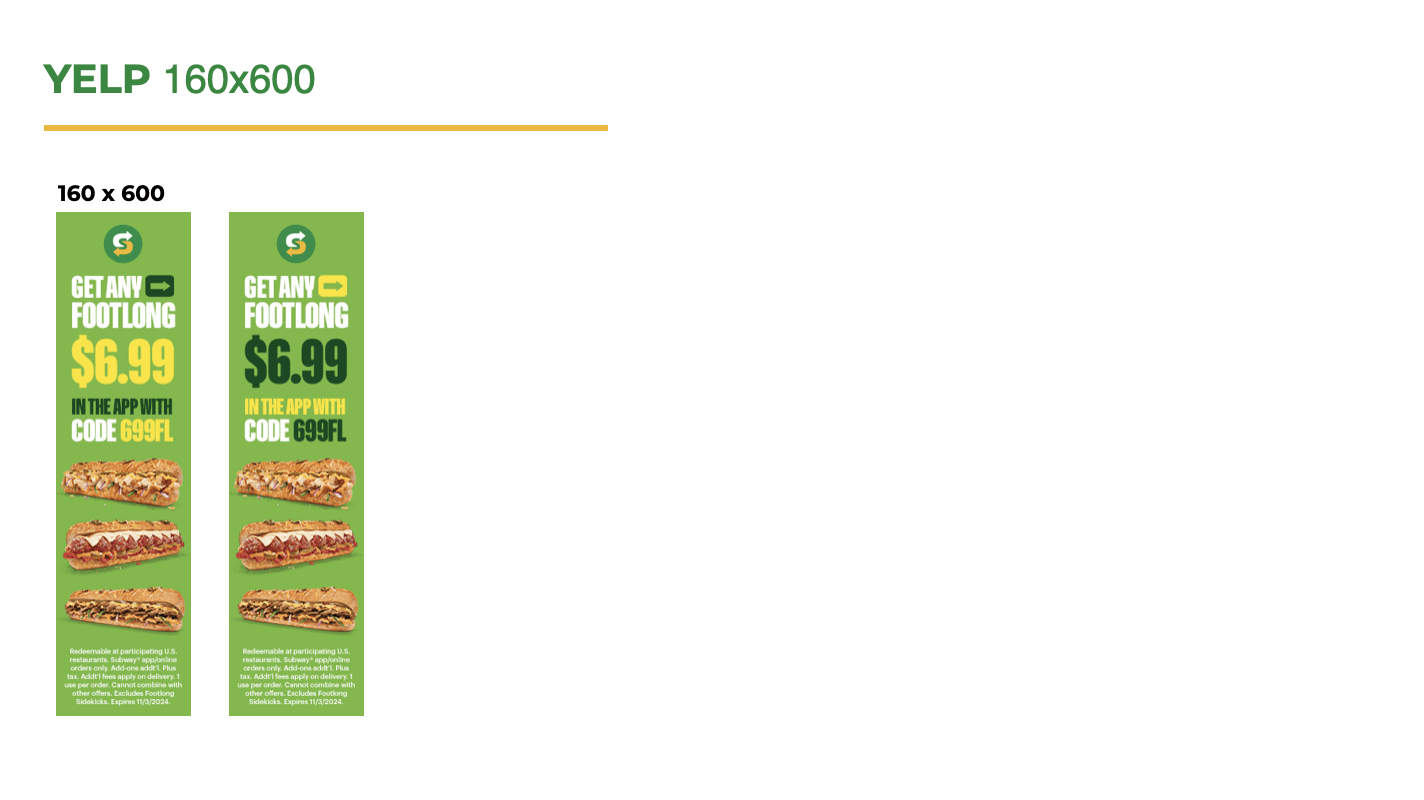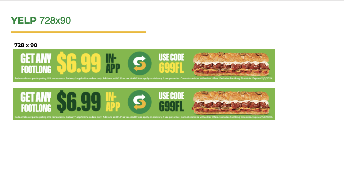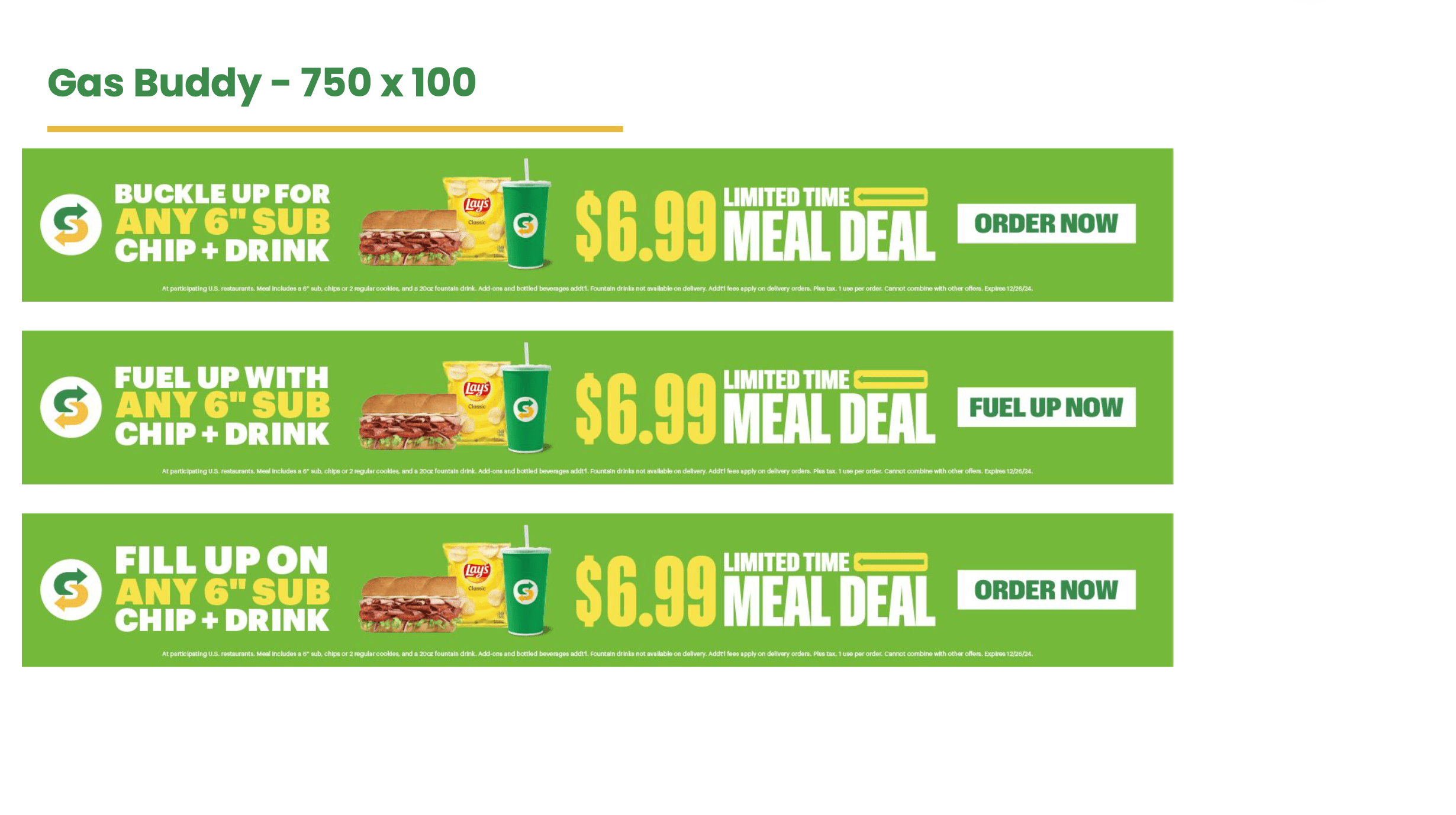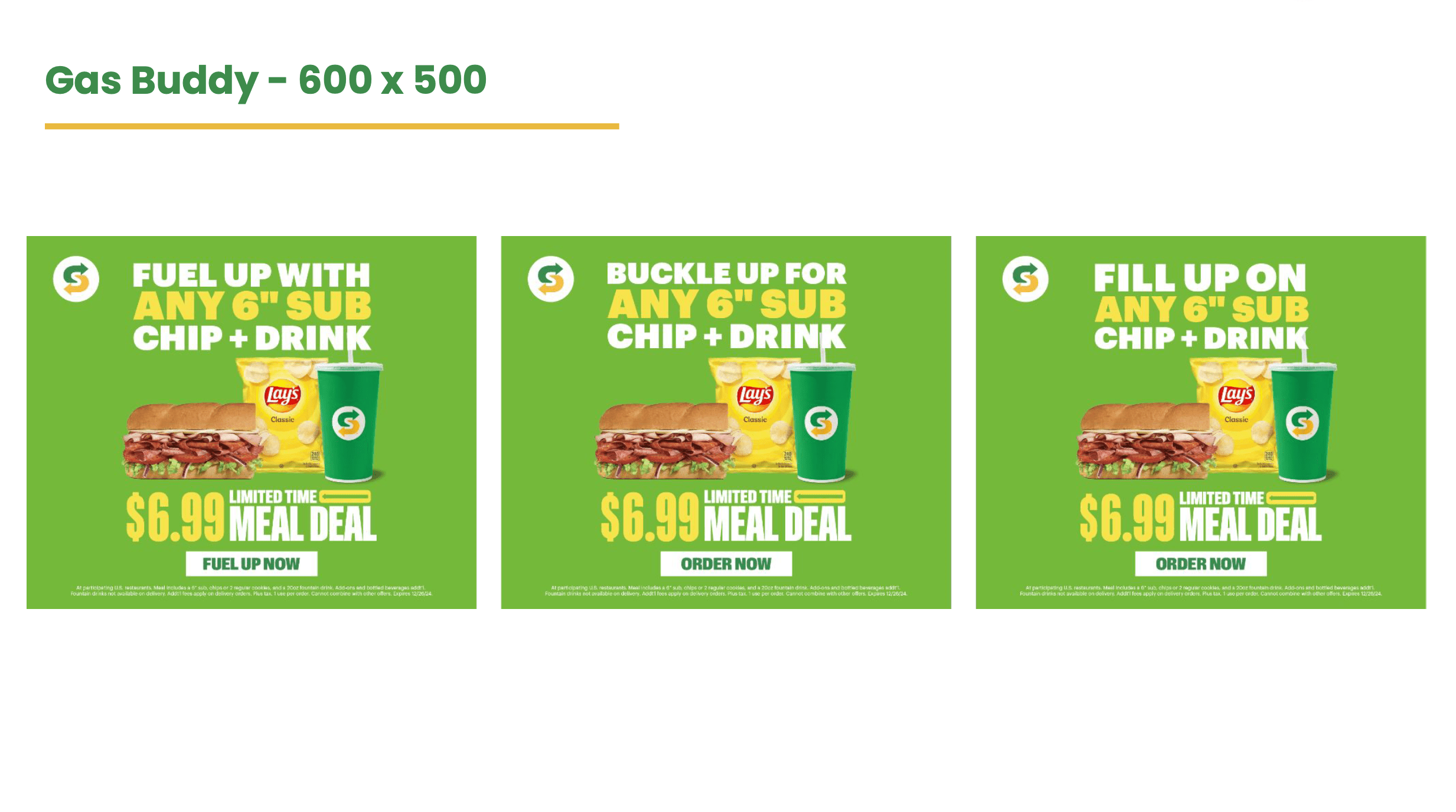 To support the national rollout of Subway’s $6.99 Meal Deal, we developed a suite of high-performing digital banners optimized across a wide range of consumer platforms. Each platform required unique creative direction, copywriting, and calls-to-action tailored to that user journey and behavior.